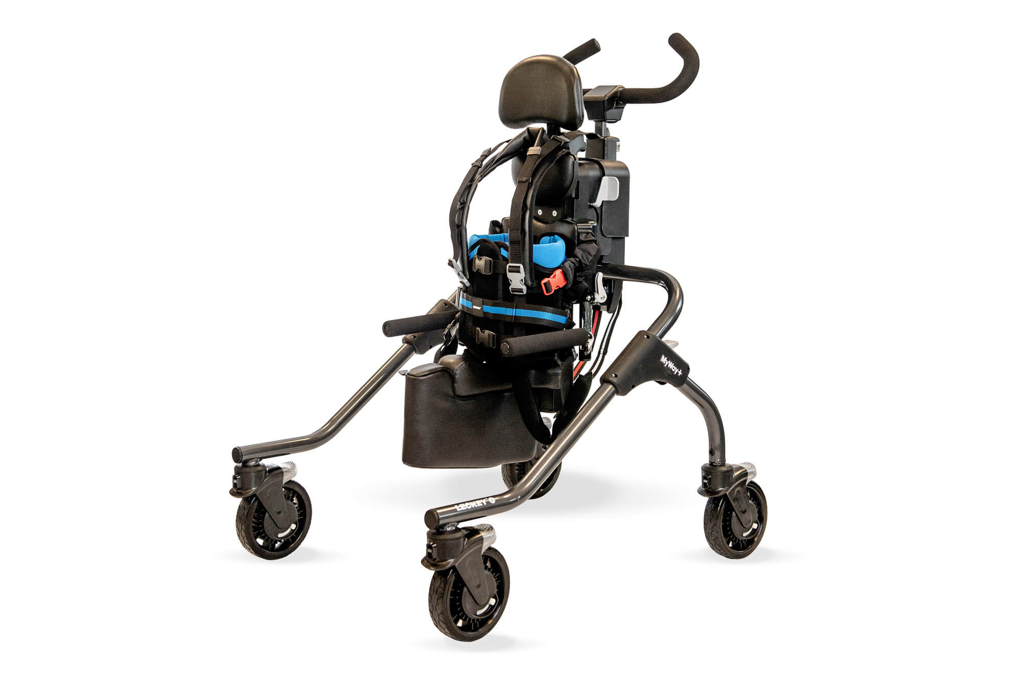 Darüber hinaus erfordert der Übergang vom Stehen zum Gehen eine Vielzahl kleiner, aber wichtiger Meilensteine, z.B. seitliche Gewichtsverlagerung, Seitwärtsgehen und Gleichgewichtskontrolle. Mit dem Pedal-Zubehör und der Seitentritt-Rollenfunktion unterstützt der MyWay+ diese Entwicklungsschritte zur Förderung der selbstständigen Bewegung.